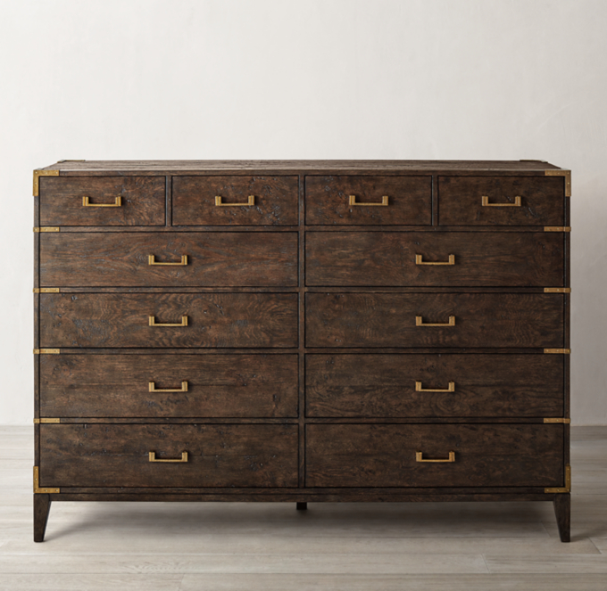 Cayden Campaign 12 Drawer Dresser With Corner Brackets